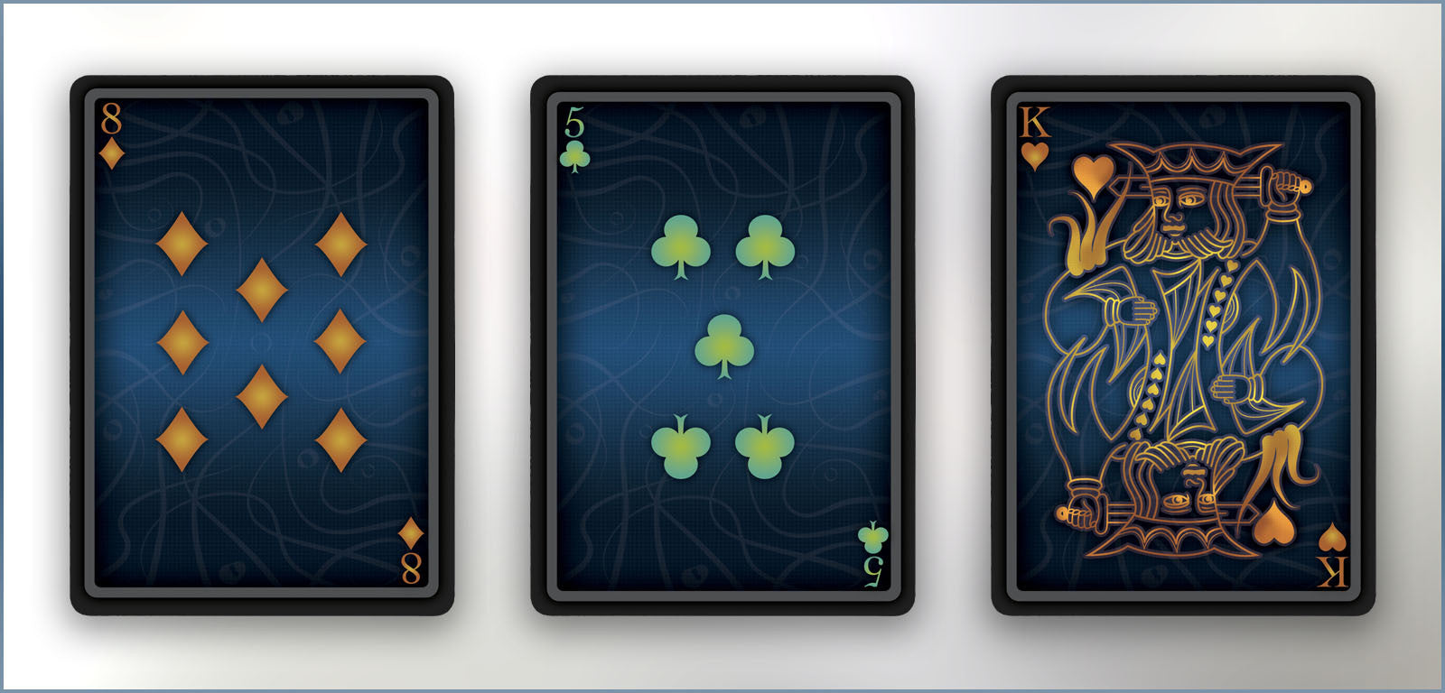 Tendril: Nightfall playing cards are a mirror of the original from 2012. The original Tendril deck was designed as if you were in the tropical rainforest, peering up at the sun through the natural habitat. Nightfall is that same view, but time-shifted to the evening, when the moon is glowing and the light is cool and dark.